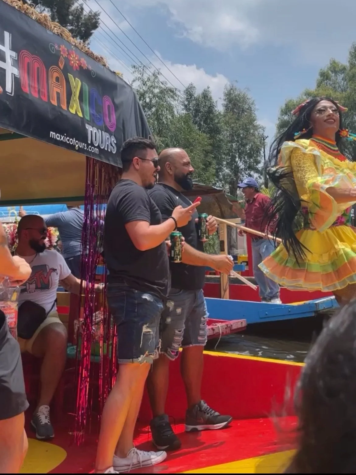 DRINKS AND FIESTA WITH OTHER MEMBERS OF THE LGBTQIA COMMUNITY ONBOARD TRAJINERAS THAT NAVIGATE THE ANCIENT WATERWAYS OF XOCHIMILCO
